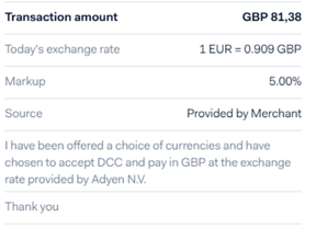 Refer to Dynamic Currency Conversion - Rules & Regulations for detailed guidance on card scheme requirements.