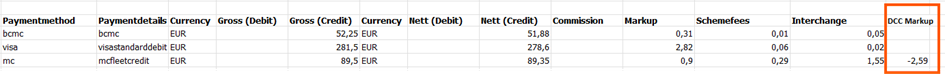 In a specific payment batch there is a column DCC markup. The amount shows the 2,90% part of the markup.