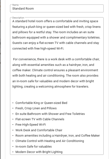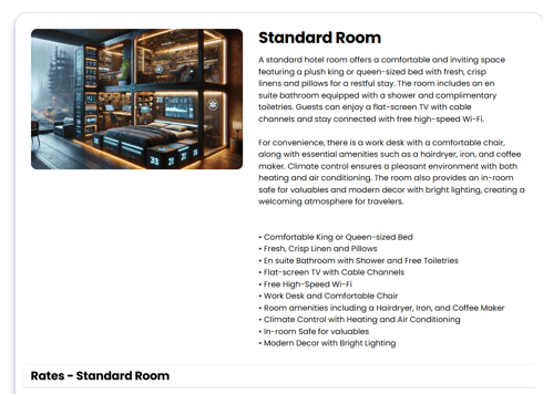 - Be Consistent: Use similar formatting styles across all room and rate descriptions.